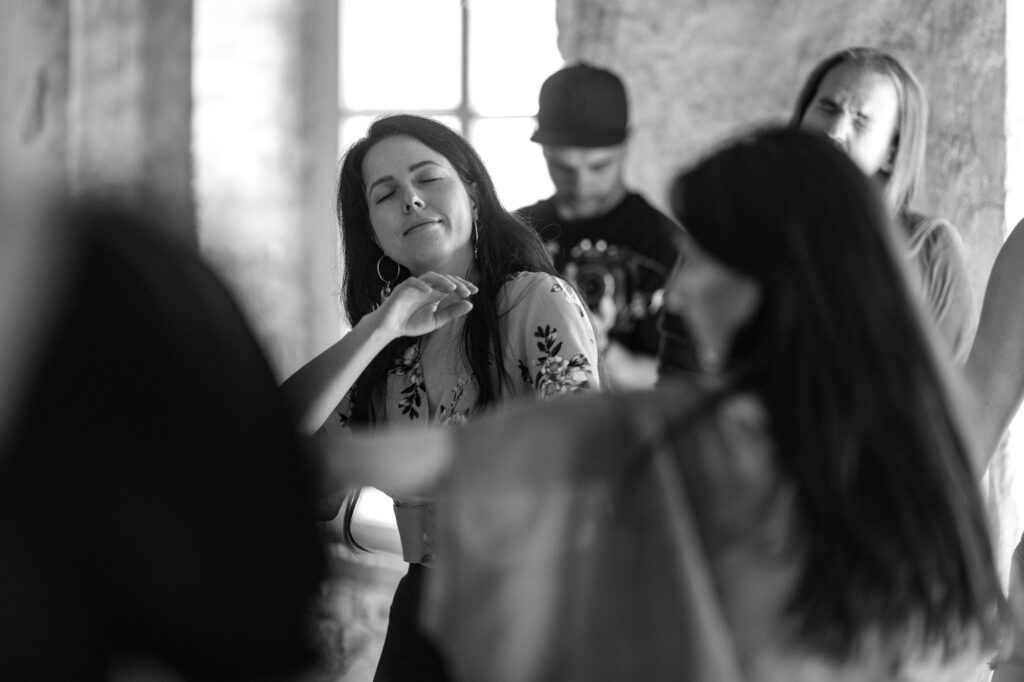 Jest też przestrzeń na eksplorowanie innych zmysłów niż wzrok. Zanurzenie się w dotyku, słuchu, węchu, oraz bycie. Czyste bycie w ciele, bez zbędnej rozkminy.