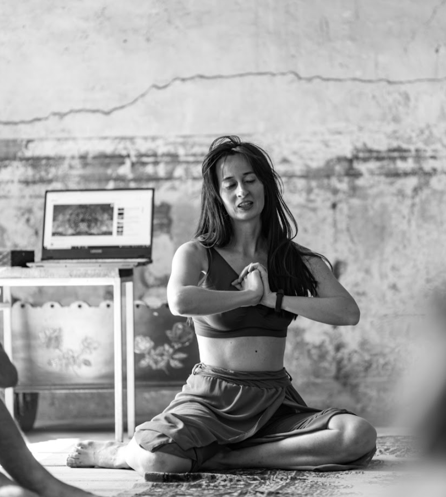 W tej przestrzeni wszelakie „dźwięki” są mile widziane – zachęcam też do przyzwolenia na to co pragnie się wydostać. Czasem jest to syczenie, mruczenie, innym razem głośne HA! Podczas utworów masz okazję rozpoznać różne jakości w sobie. Jest miejsce na przyjrzenie się temu, co się wydarza pomiędzy łopatkami, w miednicy, tym co siedzi na barkach, jak i oddanie prowadzenia swoim stopom.